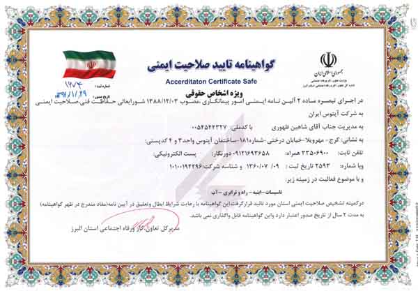 • کسب گواهینامه استاندارد برای کلیه محصولات (از سال 1386 تا 1392)