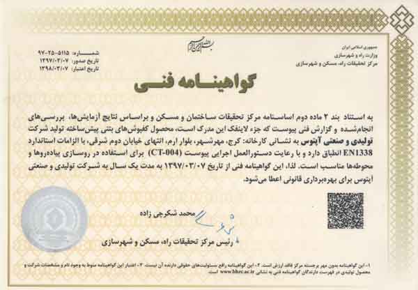 • درج در لیست تامین کنندگان مجاز قطعات بتنی شهرداری تهران و البرز (1390)